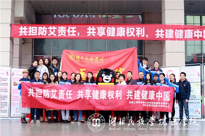 本网讯(记者 郭曼 王蓉/文 肖智仁/摄)11月30日,正值第30个“世界艾滋日”到来之际,我院学生会携手恩施州疾病预防控制中心于恩施火车站前广场成功开展艾滋病宣传活动。恩施州疾控中心艾滋病防治所所长张慈枝、健康教育所所长朱云峰及相关专家亲临现场指导。