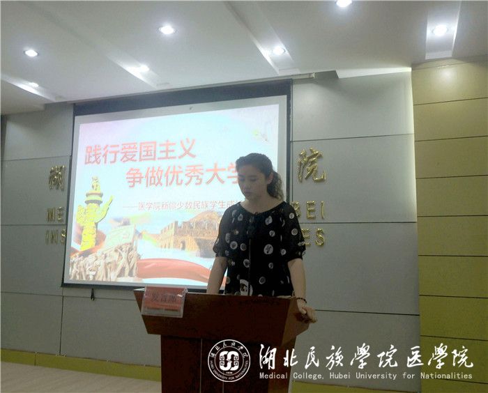 在阿德热木领誓医学生誓言之后,梁丹玉借用“青年兴则国家兴,青年强则国家强”希望在座的少数民族同学们成为无愧于自己,无愧于民族,无愧于国家的新时代青年。