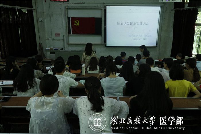 本网讯(通讯员 向锦月 周玉珠 郭恩惠 刘梦梅/文 吴亚辉 崔玉娇 汪诗名/摄)2019年5月30日至6月14日,医学部学生第一、第二、第三、第四、第六党支部在医学部陆续召开2018年秋预备党员转正支部大会。医学部学生科副科长周家頔以及各学生党支部书记出席支部大会。
