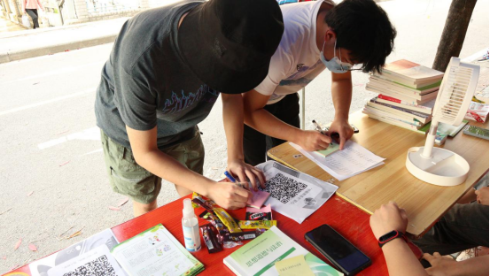本次活动从上午九点开始到下午六点结束,在西苑超市、东苑食堂、北苑食堂、小球馆等地均设有物品回收站点,每个站点有四位志愿者负责对收取的书籍等物品进行分类。活动中,同学们带来《从你全世界路过》、《中国民族理论十讲》等书籍,并且附上带有寄语的卡片,“小朋友们,希望这些书你们能喜欢,祝你们在生活中万事如意,天天向上”“成长的过程一定是鲜花与荆棘并存的,愿你健康地长大,成为正直勇敢的人”“书籍是人类进步的阶梯”。这些寄语都体现了同学们对山区孩子们的美好祝愿。活动结束后工作人员将与谭家玥乡村图书馆对接,把带有寄语卡片的爱心书籍、文具和变卖旧物所得的资金赠予乡村图书馆。