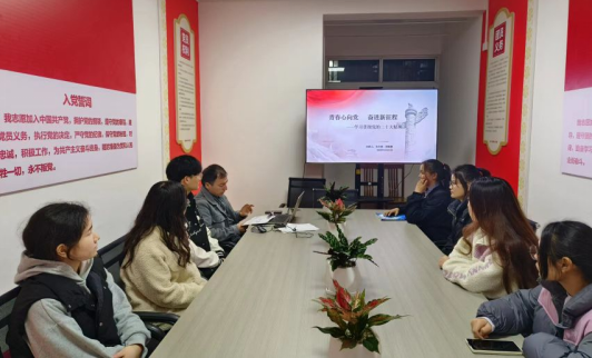 活动伊始,艾老师领学党的二十大重要精神,他号召同学们要高举中国特色社会主义伟大旗帜,全面贯彻习近平新时代中国特色社会主义思想,弘扬伟大建党精神,为全面建设社会主义现代化国家,全面推进中华民族伟大复兴而团结奋斗。随后,艾老师围绕党和国家过去五年的工作和新时代十年的伟大变革、全面建成社会主义现代化强国的宏伟蓝图和实践路径几个方面作了详细的讲解,并带领同学们观看了党的二十大报告。