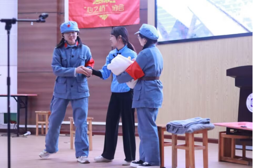 比赛在活力四射的舞蹈《STAMP ON IT》中拉开序幕。其中,四号选手的演讲以“高温下的坚守,汗水中的奉献”为主题,其慷慨激昂的语言与优美动听的背景音乐完美结合,让我们感悟到是无名英雄的负重前行和坚守奉献让我们的社会变得更加美好。第六组选手带来的话剧《半条棉被》讲述了三位红军女战士,在缺衣少食、艰苦卓绝的条件下,依然保持革命乐观主义精神,始终坚信革命必胜的故事,引发了观众们的思考。第三组选手的舞台剧《巨鲸落,万物生》,她们极具感染力与表现力地演绎出了革命先辈们炽热的家国情怀及当代青年积极向上的精神面貌,赢得台下观众阵阵掌声,荣获比赛一等奖。