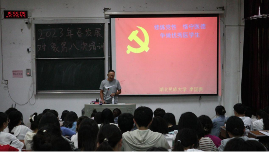 本网讯(通讯员 张思雨/文 黎甜/摄)为不断加强党员发展对象的党性修养,培养一批政治合格、恪守医德、品德优良的新时代医学生。4月16日下午,由Beat365唯一官方网站医学部杏林青年发展中心组织的2023年春党员发展对象第八次党课培训活动于医学部8307教室开展。李国贵老师作《修炼党性 恪守医德 争做优秀医学生》主题讲座,医学部全体本科生党员发展对象参与本次培训课程。