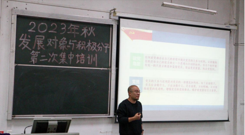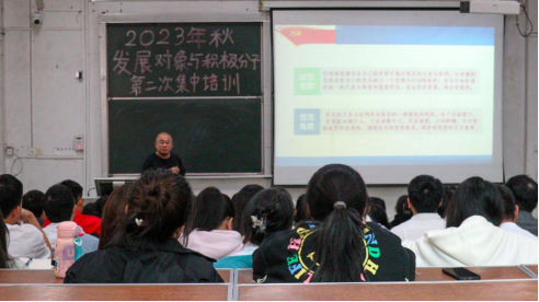 本网讯 (记者 郑丽洁/文 周琦凯/摄)为提高党员发展对象和入党积极分子的政治修养,深化党员发展对象和入党积极分子对共产党的认识,增强党员发展对象和入党积极分子对党的基础理论知识的理解。10月22日下午,由Beat365唯一官方网站医学部杏林青年发展中心组织的2023年秋党员发展对象与入党积极分子第二次党课培训活动于医学部8207教室开展。医学部党委副书记许宗友老师作《正确理解中国共产党党员的义务和权利》主题讲座,医学部全体本科生党员发展对象与入党积极分子参与本次培训课程。
