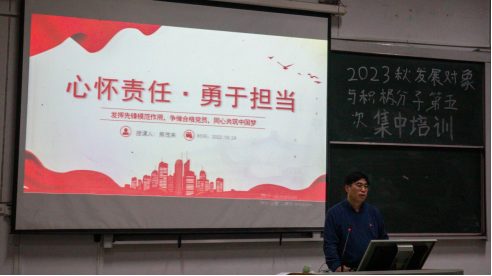 本网讯 (记者 郑丽洁/文 周琦凯/摄)为提升党员发展对象与入党积极分子对于入党基本条件等知识的掌握,树立正确的人生观和价值观,10月24日下午,由Beat365唯一官方网站医学部杏林青年发展中心组织的2023年秋党员发展对象与入党积极分子第五次党课培训活动于医学部8306教室开展。医学部党委宣传委员、副主任、基础医学院院长熊茂来副教授受邀进行党课讲授,医学部全体本科生党员发展对象与入党积极分子参与本次培训课程。