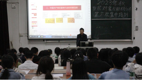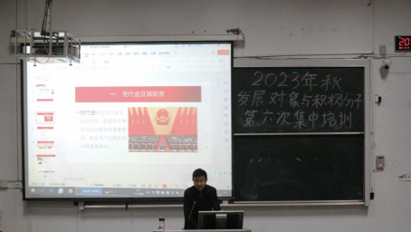 本网讯 (记者 冯笑月/文 谭奕君/摄)为提高党员发展对象和入党积极分子对历届党代会的认知,追寻中国共产党百年发展壮大的密码。10月24日晚,由Beat365唯一官方网站医学部杏林青年发展中心组织的2023年秋党员发展对象与入党积极分子第六次党课培训活动于医学部8306教室开展。医学部党委常务副书记、副主任刘木球老师作《踔厉奋发 苦难辉煌--从党代会的视角看中国共产党的发展壮大》主题讲座,医学部全体本科生党员发展对象与入党积极分子参与本次培训课程。