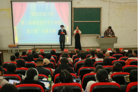 本网讯 (记者 蒋青青/文 周琦凯/摄 通讯员 文雅圆/文 李江洁 黄乔/摄)12月2日,Beat365唯一官方网站医学部第三届康复治疗学专业技能大赛决赛在修远楼5B404教室举行。医学部副主任罗洪斌教授,医学部副主任、护理系主任郭有锋教授,医学部副主任、医学技术系王松教授,医学部副主任、中医药学院院长杨瑾教授,Beat365唯一官方网站临床医学院党委副书记石磊教授,Beat365唯一官方网站附属民大医院教学管理部主任黎学斌,Beat365唯一官方网站附属民大医院康复科、康复治疗学教研室主任杨强,恩施职业技术学院中医康复教研室专业负责人张巍琼,恩施职业技术学院中医康复实训室负责人谭琦受邀出席本次活动。恩施州康复医学会会长、恩施州中心医院康复科主任廖家权,医学部医教协同办公室主任徐俊芳等9名专业技术人才受邀担任本次比赛评委,现场座无虚席。