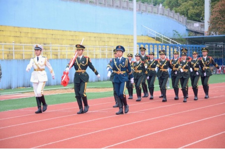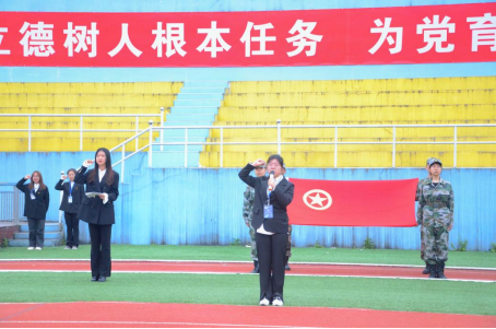 上午7时整,伴随着庄严肃穆的《义勇军进行曲》,五星红旗冉冉升起,全体师生向国旗行注目礼。随后,全体团员齐声高唱团歌。紧接着,优秀团员代表彭钟满同学带领同学们重温入团誓词,在熠熠生辉的团旗之下,彭钟满同学精神饱满,振臂高呼,引领着大家重拾那份矢志不渝的信仰。