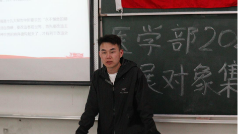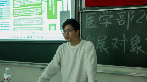 为提高党员发展对象与入党积极分子的思想觉悟和政治素质,推动工作的落实。4月16日下午,第十一次培训课程在医学部8206教室进行。本次课程由医学部党委统战委员、副主任、护理系主任郭有锋老师担任主讲人,医学部全体党员发展对象与入党积极分子参与此次培训课程。本次课程的主题是“医学生的就业规划设计”。首先,他从客观务实、渴望成功和乐观积极三个方面阐述了个人价值观。紧接着,郭老师分别从家庭因素、社会就业环境和竞争压力三个方面分析了同学们走进医学殿堂的原因,认为家庭因素为主要因素。随后,他向同学们介绍了医学生的毕业去向,并积极鼓励同学们备考重点大学的硕士研究生。课程最后,郭有锋老师希望同学们能够明确奋斗目标,并为之付诸实践行动。
