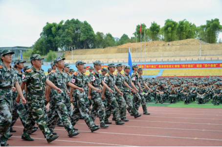 医学部的两支汇演连队随着指挥员的一声令下依次步入会场,他们身着统一的迷彩服,步伐矫健、口号响亮,向全校师生展现出了军训期间锤炼出的坚韧品质和团队精神。