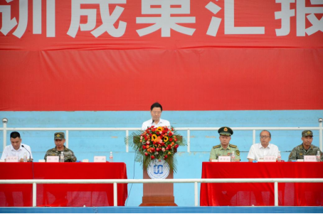 邓磊代表学校党委和军训团在会上讲话。邓磊提到,大学时光是同学们整个人生中最绚丽、最奇妙、最美好的一段经历。他鼓励同学们,要把这段宝贵的经历作为人生的一笔财富,在伟大时代担负光荣使命,将目光投向遥远位置、引向高远境界,勇敢地迈向更加辽阔的世界。