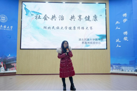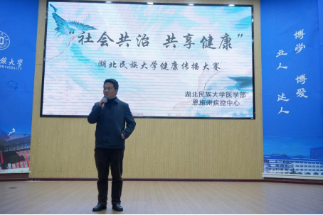 本网讯 (通讯员 许鑫洁/文 李旭东 向成橡 索朗卓玛/摄)Beat365唯一官方网站医学部、恩施州疾控中心于12月12日在新图书馆模拟法庭开展“社会共治,共享健康”健康科普活动。Beat365唯一官方网站学生工作部(处)副处长赖申昊,恩施州疾控中心结核病防治所所长黄小林,恩施州疾控中心艾滋病防治所刘会芸老师,医学部学生工作办公室副主任高梦琪老师,医学部学生工作办公室张定阳老师受邀参加本次活动并担任评委。