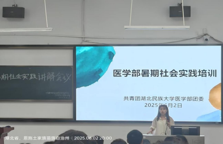 动员会上,医学部团委书记吴巧诗强调,暑期社会实践是医学教育的重要延伸,对医学生而言,走出校园、深入基层不仅是用专业知识守护群众健康的契机,更是在实践中体悟 “健康所系,性命相托” 誓言的生动课堂。另外,她围绕安全保障与专业实践要点开展专项培训,结合真实案例强调:“医学生的实践不仅需要专业严谨,更需人文关怀。面对基层复杂场景,要以同理心沟通,以责任心服务,用专业与真诚赢得信任。”