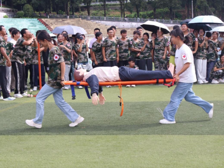 本次比赛聚焦应急救援实战需求,设置多环节考验,兼具专业性与教育意义。首轮“迎面接力赛”以班级为单位组队,每组10人且男女比例均衡,选手采用“背与被背”的协作形式完成接力。该环节不仅考验参赛学生的体能耐力与速度反应,更通过密切配合强化团队默契,模拟应急场景下的高效协作流程。