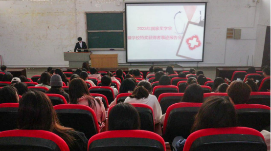 本网讯 (记者 蒋青青/文 周琦凯/摄)为发挥先进典型的示范、引领和带动作用,加强学风建设,激励广大医学部学生成长成才,11月23日,医学部2023年国家奖学金暨学校特等奖学金获得者事迹报告会在修远楼5B403顺利举行,学生工作办公室老师艾尔肯·吾斯曼受邀出席活动。