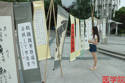 本网讯(记者 张璐 许忆苇)为丰富廉政文化内涵,创新廉政文化载体,促使广大师生树立正确的人生观、价值观,我院书画社于6月4日上午10:00在大学生广场举办了以“廉政从政、爱岗敬业、敬廉崇洁、知荣明耻”为主题的廉政书画展现场展示大赛。本次活动特邀请到了恩施州书法协会的叶文美、谭杰平、周恩平、余中权四名老师。现场近千人参加此次活动。