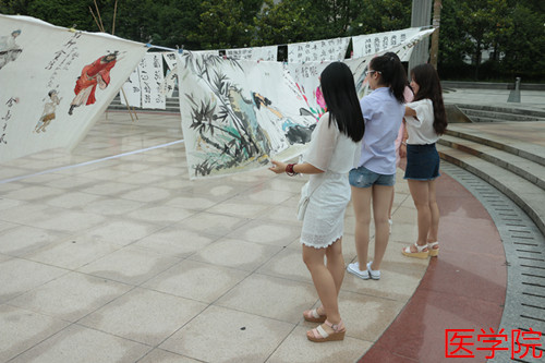 本次活动共征集到243副书法作品,包括教师作品6副,往届作品66副。其中展出教师作品6副、学生作品94副。其中一幅《枇杷山鸟》:“梦觉只闻铃索响,不知山鸟咏枇杷”,书画结合的画面让人眼前一新。另一幅《梅》:栩栩如生的梅花上面提写着“梅自傲骨,吾自清廉”的绝佳诗句。之后,叶文美老师还给现场作画的同学讲解了提笔书写的方法技巧。