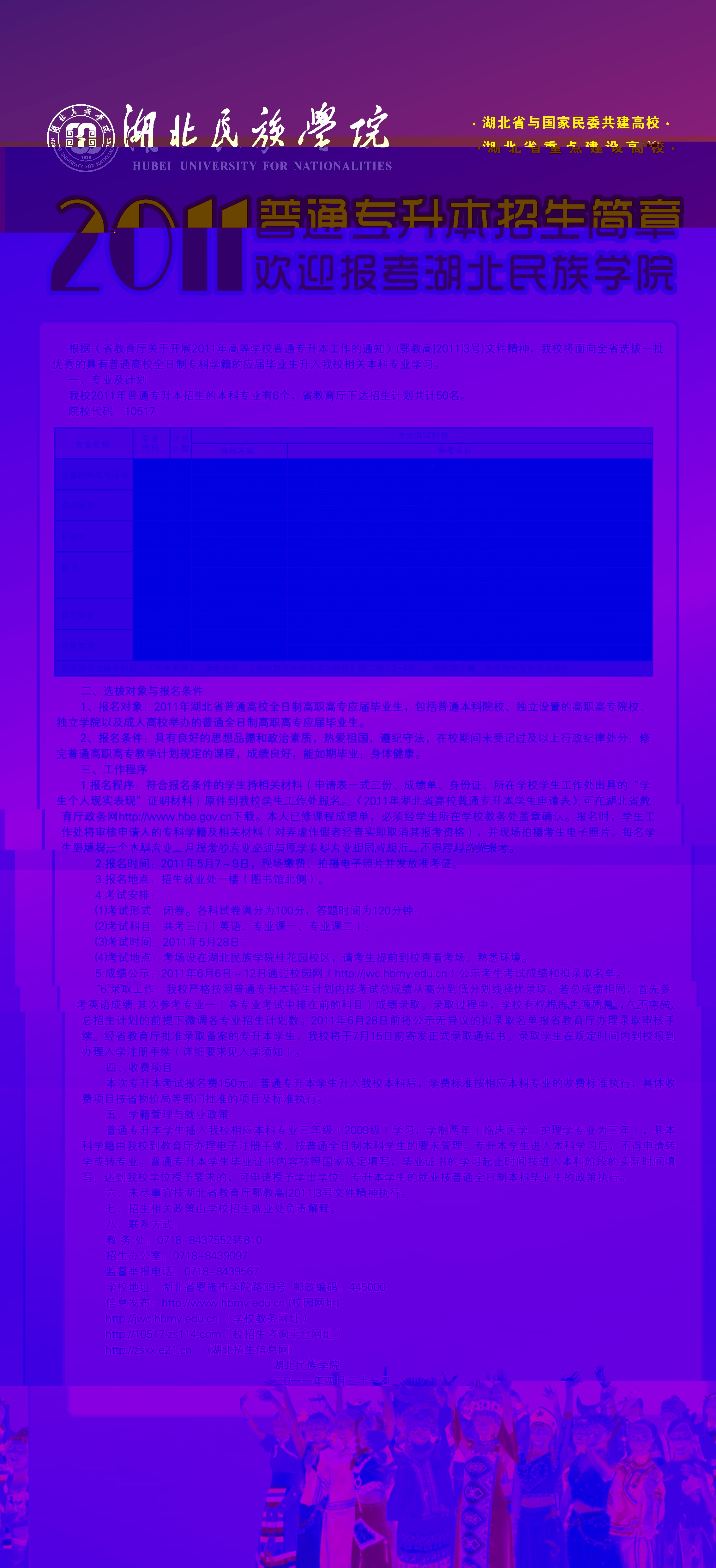 欢迎报考湖北民族学院2011年普通专升本各专业