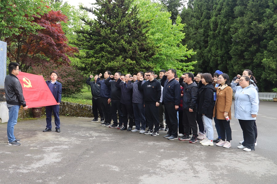 在党建特色实践活动中,林学园艺学院党总支书记邓顺松带领全体党员重温入党誓词,党员面向党旗庄严宣誓,决心立足岗位奋勇争先、砥砺前行。