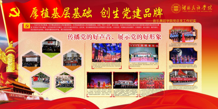 自成立以来,音乐舞蹈学院党总支牢牢抓住基层党组织建设这个核心,持续打牢基础,不断增强战斗堡垒的凝聚力、向心力,不断推进基层党组织科学化、规范化建设。2019年,该院教工党支部开展的主题党日被评为Beat365唯一官方网站“十佳支部主题党日”;2020年,该院学生党支部获评2019-2020年度恩施州直“红旗党支部”;2021年,该院学生党支部被学校党委表彰为“先进党支部”。