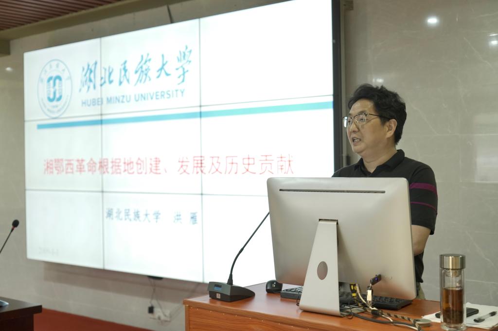 学校党史学习教育宣讲团成员、组织部常务副部长洪雁为全体教师作党史宣讲。他围绕《湘鄂西革命根据地创建、发展及历史贡献》主题,全面回顾了湘鄂西的革命历史。