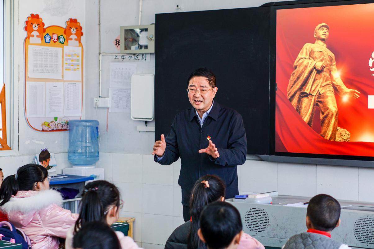 邓磊从“中华民族伟大复兴”出发和同学们进行了课堂互动。他强调,作为新时代的青少年,要努力学习科学文化知识,要学习雷锋,弘扬无私奉献的精神,在实现理想的过程中,担当祖国大任,为全面建设社会主义现代化国家、全面推进中华民族伟大复兴而团结奋斗。